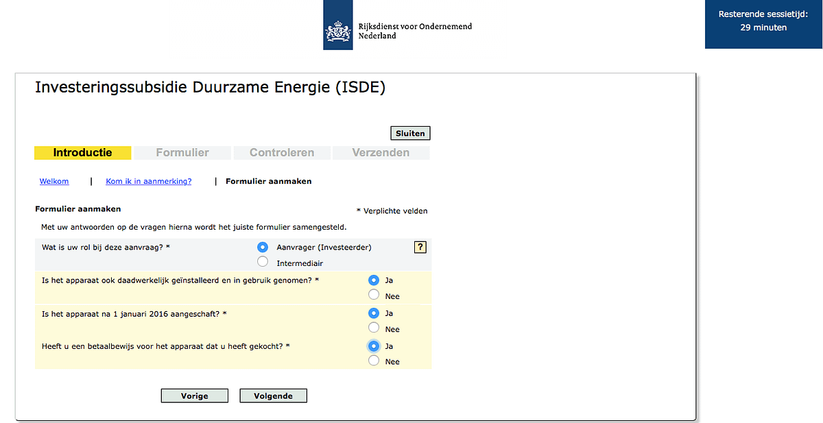 - Door nu alle formulieren stap voor stap in te vullen vraagt u de subsidie aan.
