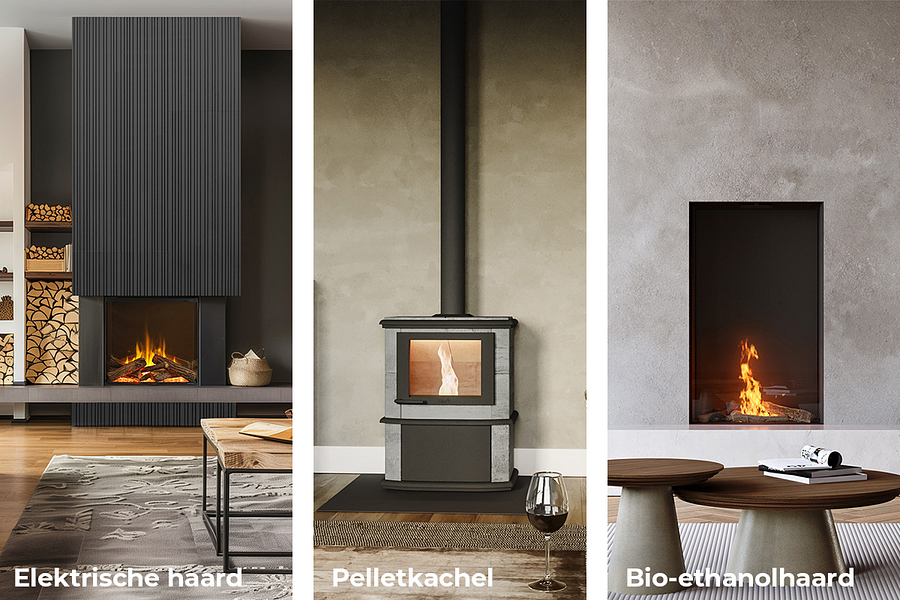 Een efficiënter alternatief houtkachel. Deze kachels verbranden geperste houtkorrels (pellets) met een zeer hoge verbrandingsgraad. Ze zijn programmeerbaar, zuinig en stoten relatief weinig fijnstof uit. - Bio-ethanol haarden