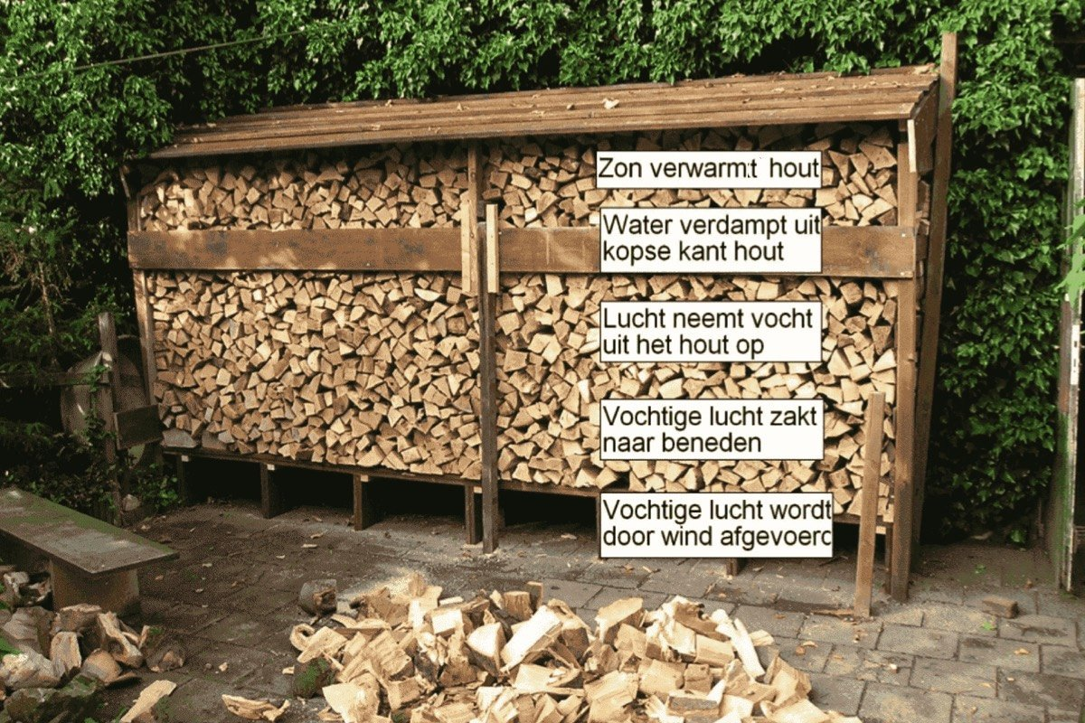 Er zijn altijd een aantal dingen waar u rekening mee moet houden. Eén van de belangrijkste dingen is om het hout ongeveer 30 centimeter los van de grond op te slaan, zodat de vochtige lucht door de wind kan worden afgevoerd. Leg bijvoorbeeld een pallet onder het haardhout. Het is belangrijk dat het haardhout niet te diep wordt gestapeld, want anders heeft de wind geen mogelijkheid om door uw haardhout te waaien. De stapels moeten los van elkaar, dus met tussenruimte worden gestapeld en vrij liggen, dus niet strak tegen een muur bijvoorbeeld. Er is geen limiet aan het aantal stapels dat achter elkaar kan worden gestapeld, zolang die tussenruimte en de afstond vanaf de grond maar worden gerespecteerd. Je kunt prima 10 stapels achter elkaar leggen en dat zal prima drogen, het is alleen niet zo praktisch. Dek na het stapelen je brandhout af om het te beschermen tegen de regen. Al het water dat op het brandhout terecht komt, moet opnieuw opdrogen. Scherm de stapel niet volledig af met bijvoorbeeld een zeil. De wind moet vrij spel hebben om het hout te verluchten en te drogen. Maak de afdekking goed vast want een kleine windvlaag kan ervoor zorgen dat de afdekking gaat vliegen!