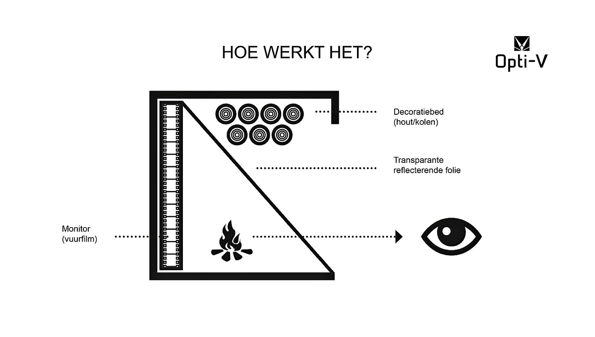 De Opti-Virtual® is weliswaar een elektrische haardenlijn, maar gaat verder door een illusie van vuur te creëren met een levensecht vlammenspel, geknisper en vonkjes die zelfs weg lijken te springen. De techniek is gebaseerd op Pepper’s Ghost. Een principe dat ‘verschijningen’ als illusie weet te vertonen en vooral gebruikt wordt bij grote attracties, op toneel en in musea. Faber heeft de techniek verfijnd voor de nieuwe Opti-Virtual®, die in elke ruimte eenvoudig en naar eigen smaak kan worden ingebouwd.