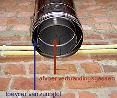 De zogenaamde gesloten gashaard en gaskachel maken gebruik van een concentrisch afvoerkanaal. Dat betekent een kanaal binnen een kanaal. Het binnenste kanaal (meestal 10cm en bij grotere haarden 13cm) wordt gebruikt om, net als bij de open systeem gaskachel, de verbrande gassen af te voeren. De buitenste ring of kanaal wordt gebruikt om de zuurstof (voor de verbranding) aan te zuigen. Hierdoor ontstaat er een gesloten systeem van aanvoer en afvoer. Behalve dat je hiermee niet meer afhankelijk bent van de zuurstof in de ruimte (die nadelig beïnvloed kan worden door bijvoorbeeld balansventilatie of een afzuigkap) ben je veel flexibeler qua aansluiten. Het gesloten systeem zorgt zogezegd voor zijn eigen trek. Hierdoor is het bijvoorbeeld mogelijk om de afvoer door een plat dak van een uitbouw te voeren (natuurlijk altijd rekening houden met ramen en roosters die open kunnen). Ook kan met dit systeem de uitvoer door de gevel of pui. Een gesloten systeem zorgt dus voor meer flexibiliteit en het is veiliger. Bovendien hebben gashaarden met een gesloten systeem als voordeel dat er geen rookgasventilator nodig is. Daarnaast bereikt de binnenkant van de haard een hogere temperatuur, waardoor de verbranding efficiënter verloopt. Deze haarden hebben dus een hoger rendement. Als laatste is het niet essentieel om een bestaande schoorsteen te hebben. Bestaande kanalen kunnen uiteraard gebruikt worden, maar daar is de haard niet afhankelijk van.